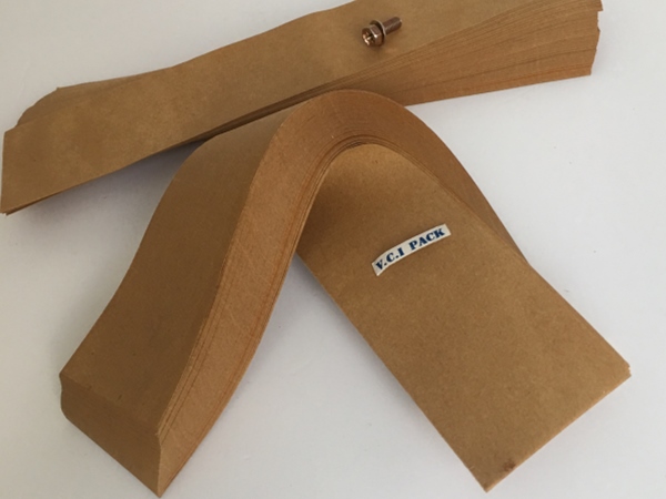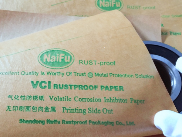 4、包裝過程---將含有緩蝕劑的面朝向金屬包裝,不覆膜防銹紙可作為金屬產品間墊層隔材使用,以免其他材質阻隔材料含S、CL化學成分,影響防銹效果