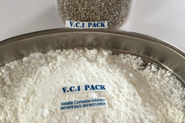 氣相防銹粉末多種特制的氣相緩蝕劑原料按一定配比均勻混合加工而成,具有水溶性,是一種新型的氣化性防銹材料。在密閉空間內,VCI經(jīng)氣化揮發(fā)到金屬的每個角落,吸附在金屬表面形成致密保護膜層從而起到防銹的作用